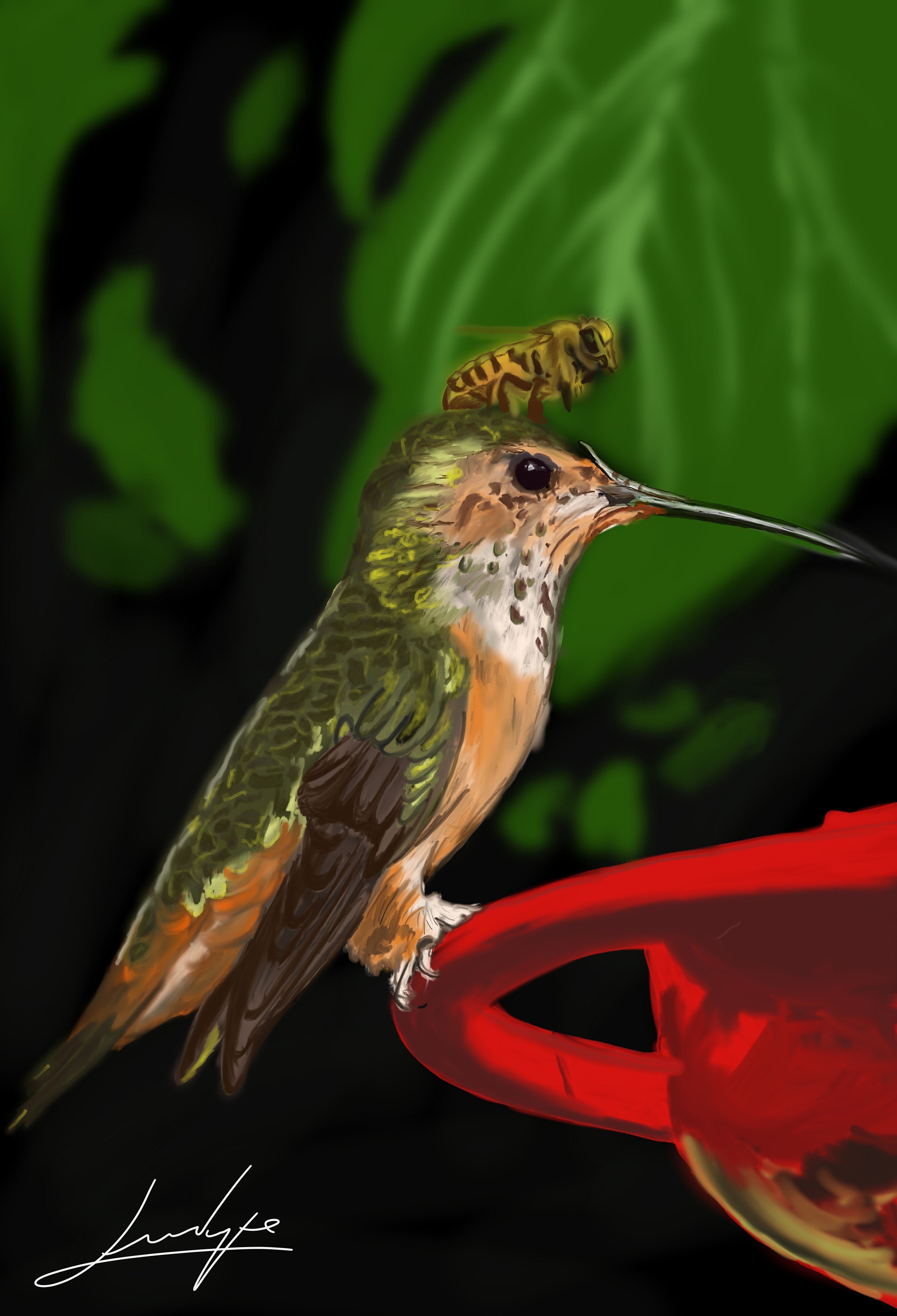 Inspirado por la imagen de un colibrí y una abeja posados en su cabeza, Duque busca resaltar el papel fundamental que desempeñan estos dos pequeños seres en el ecosistema global.